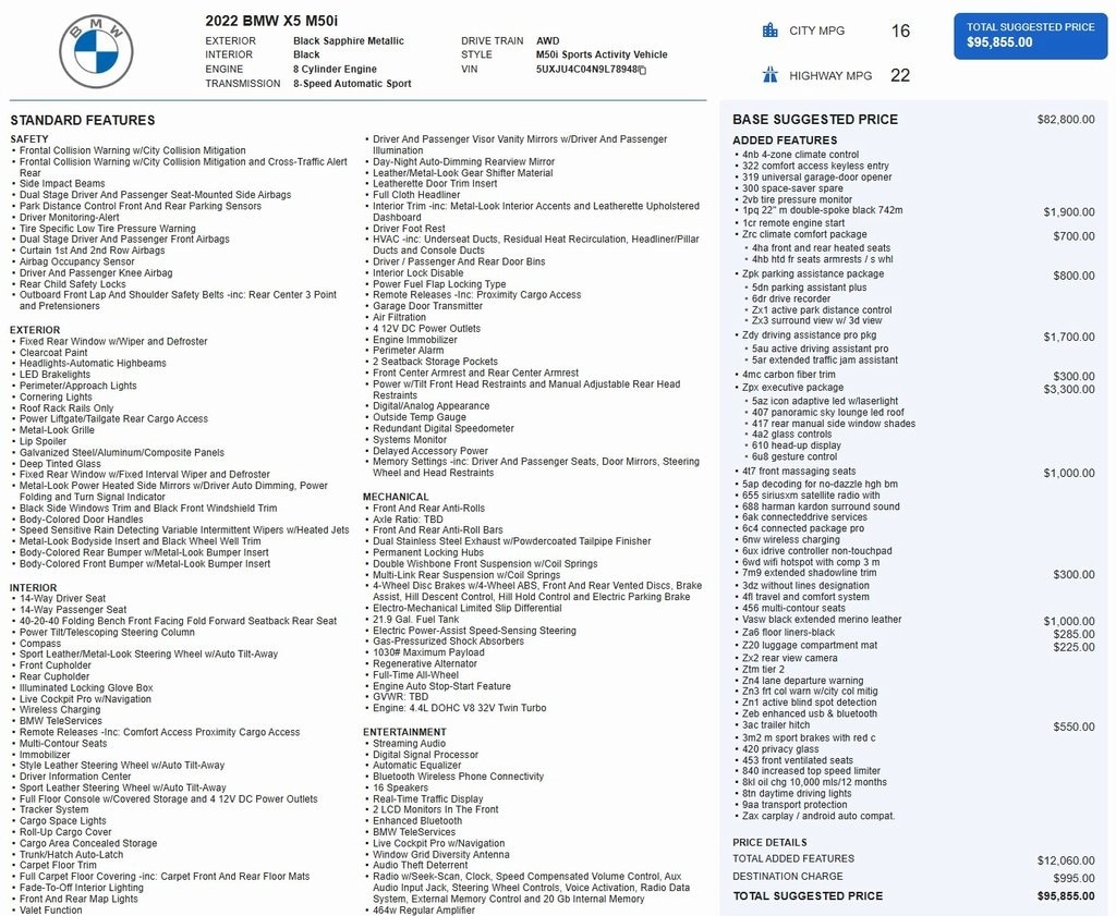 It was hard to find the X5 Xdrive40i we wanted so we ordered a 2022 in July 2021, delivered in August. Traded our one-owner 2012 Ford Edge Limited with every option & 145K miles. Wife thought she wanted a MB E350 but the BMW driving dynamics and very tasteful styling swept her off-her feet. The driving & handling dynamics are very solid and the interior & exterior styling of the vehicle is a step above the many vehicles we test drove, a complete package. The front leather seats are comfortable, the interior is very roomy, quiet, and the feel with the panoramic roof open makes driving and the view enjoyable and fun to drive. The value is very good overall considering outstanding build quality, standard equipment & the standard electronics packages. We ordered only 4 options; metallic paint, leather seats, parking assist package, and 20" tires. With a discount and low BMW financing we are very happy and ready to enjoy this vehicle for the next 10 years.…